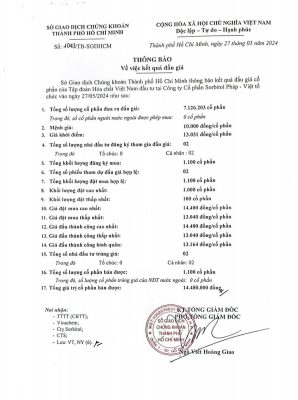Announcement of the Results of the Share Auction of Vietnam National Chemical Group’s Investment in France–Vietnam Sorbitol Joint Stock Company psdgroup Notice of Share Transfer of VINACHEM at SOFAVI Recruitment Announcement (June 2025)